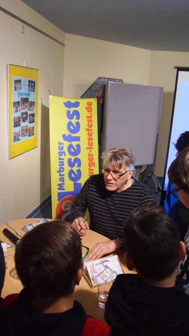 Die Lesefest-Autor*innen sind wie immer zu Gast in der Stadtbücherei Marburg, in Kitas, Grundschulen und weiterführenden Schulen in Marburg und dem Landkreis Marburg-Biedenkopf.